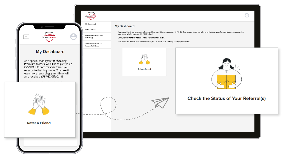 Our easy-to-use software empowers your customers to recommend your dealership to their friends and family, whether they're buying new cars or used cars. By offering enticing referral incentives, you’ll not only reward your loyal customers but also create an ongoing pipeline of potential buyers.